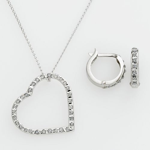 Diamond and Platinum Heart Pendant & Hoop Earring Set $77.50 (regularly $250.00)