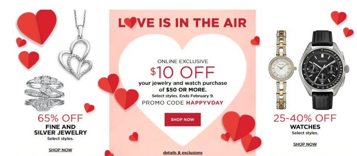 $10 Off $50 on Valentine’s Day Jewelry and Watches