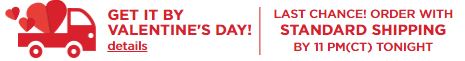 Today is the LAST DAY to have your items guaranteed to ship for Valentine’s Day! Use code HAPPYVDAY to take $10 off your $50 purchase of Valentine’s Day Jewelry and Watches.