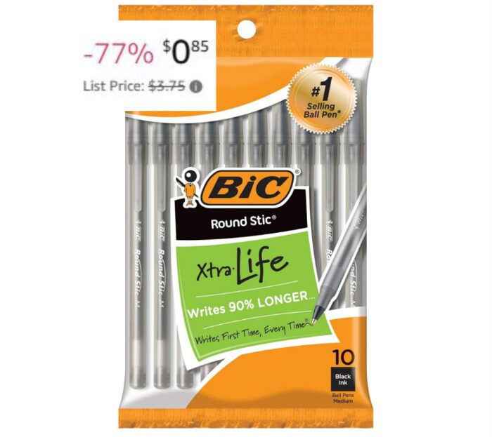 10-Count BIC Round Stic Xtra Life Black Ballpoint Pens $0.81-$0.85 (reg $3.75)