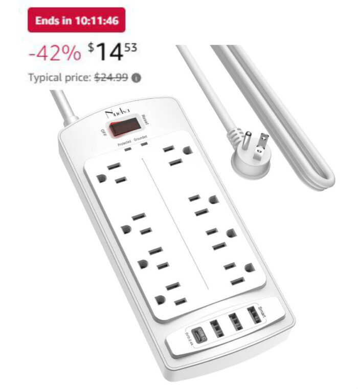 10-Foot Power Cord Surge Protector Power Strip with 8 Outlets and 4 USB Ports $14.53 (reg $24.99)