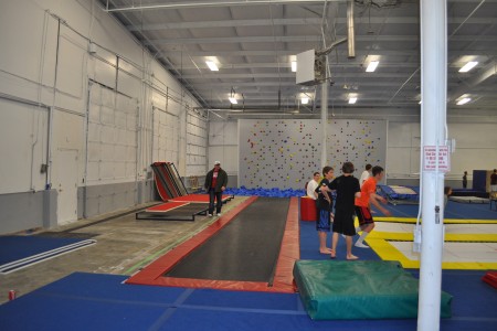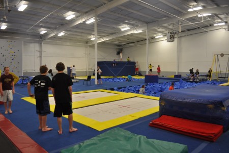 Your family will have tons of fun playing and there is something for everyone. There are three huge foam pits, several euro trampolines, 50 ft. and 40 ft. long tumbling tracks (my favorite), aero ball, climbing wall with over hanging pit, double minis, two wall sessions and more to come! They even have a special play area for children under six.