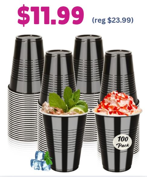 100-pcs Black Plastic Cups $23.99