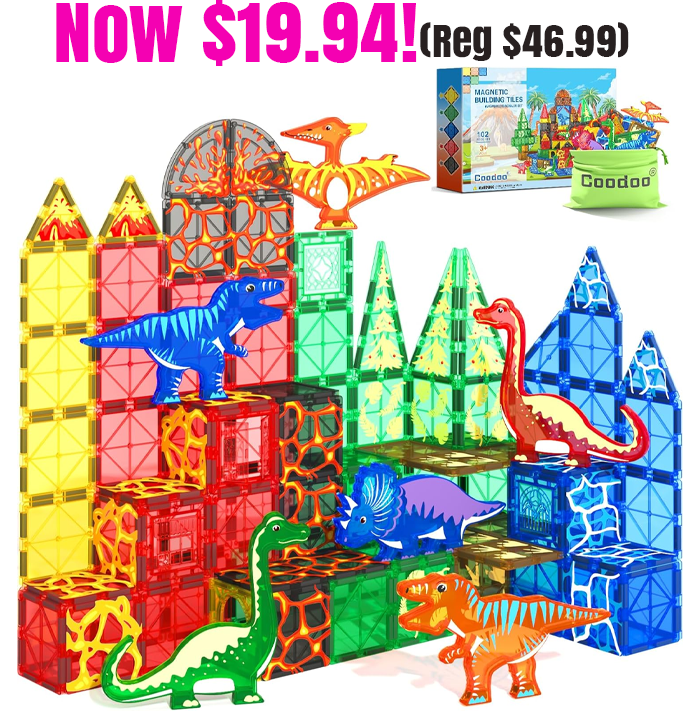 102-PCS Dinosaur Toys Magnetic Tiles for $19.94 (Reg $46.99)!