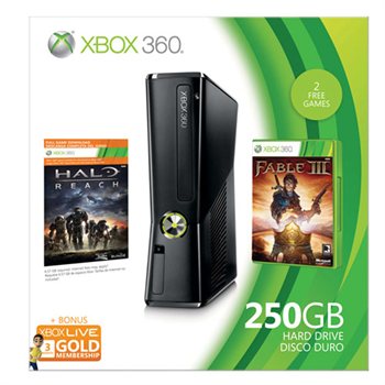 Xbox 360 250GB Console (includes BONUS 3-Month Xbox Live Subscription Card and Halo: Reach and Fable III games) Just $299. ships FREE