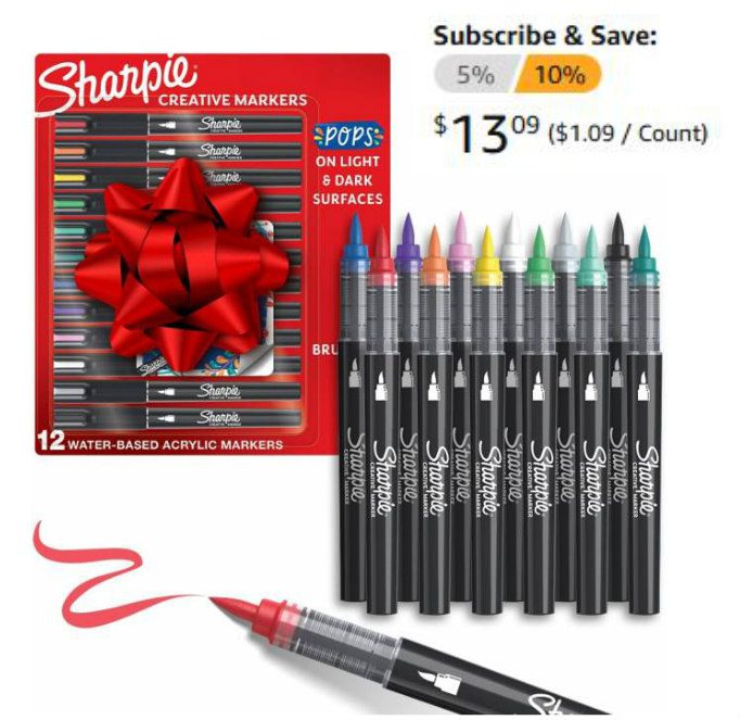 12-Count Sharpie Creative Paint-like Brush Tip Acrylic Markers $14.54 (reg $33.48)