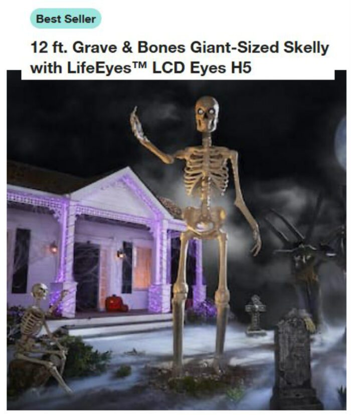 12 ft. Grave & Bones Giant-Sized Skelly with LifeEyes LCD Eyes – Available Now!