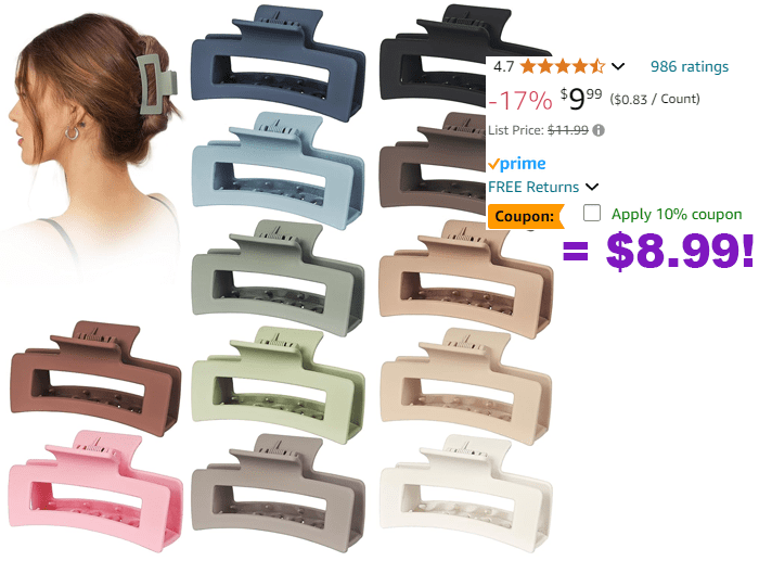 12 Pack 3.5″ Medium Hair Claw Clips for $9.99 (Reg $11.99)