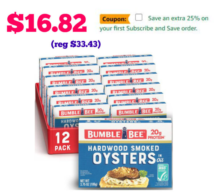12-Pack Bumble Bee Canned Hardwood Smoked Oysters $28.04 (reg $33.43)
