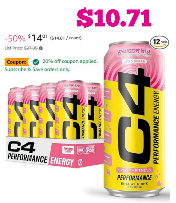 12-Pack Cellucor C4 Performance Energy Drink | Strawberry Blast $16.48 (reg $27.99)