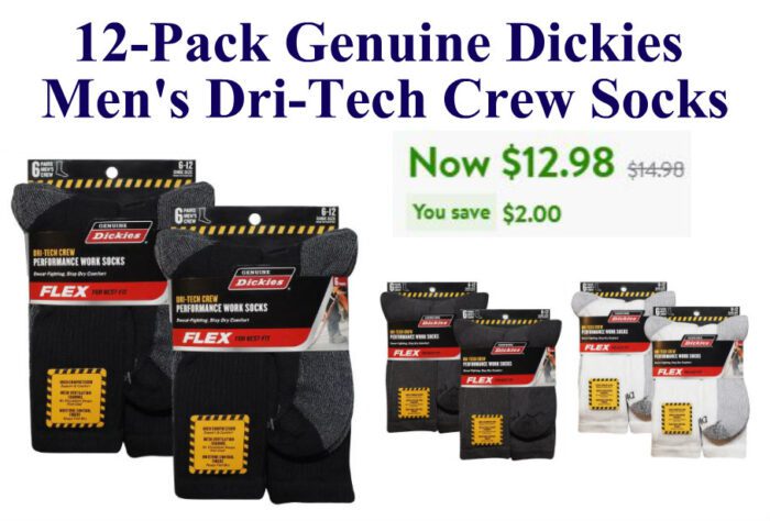 12-Pack Genuine Dickies Men’s Dri-Tech Crew Socks $12.98 (reg $14.98)