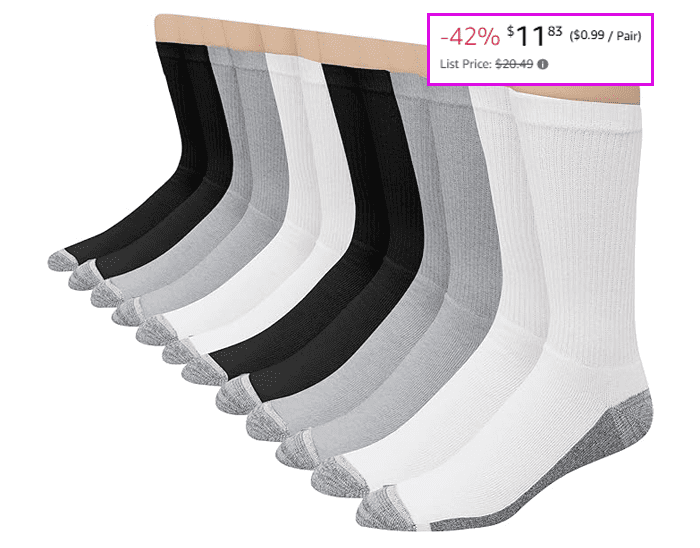 12-Pack Hanes Men’s Max Cushioned Crew Socks for $11.83 (reg $20.00)
