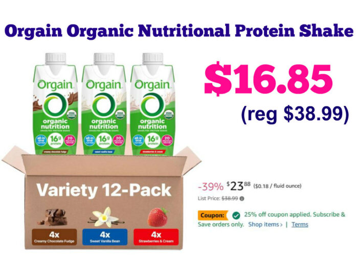 12-Pack Orgain Organic Nutritional Protein Shake Variety Pack $16.85 or $19.66 (reg $38.99)