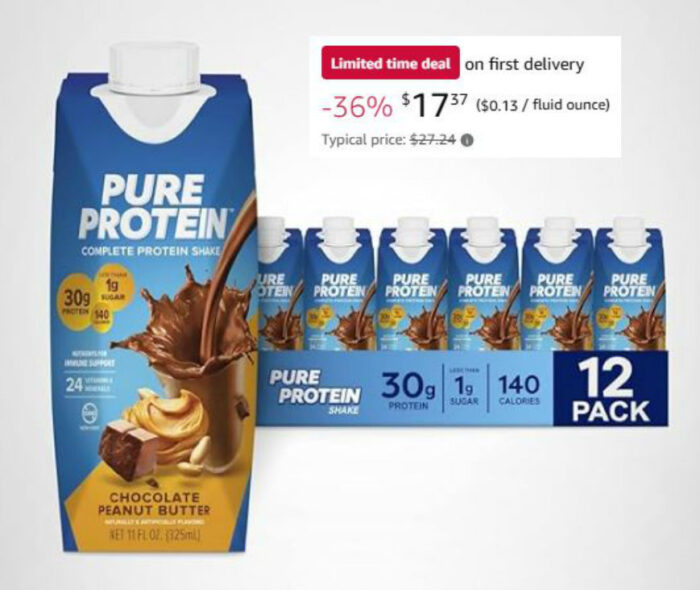 12-Pack Pure Protein Chocolate Peanut Butter Shake $20.43 (reg $27.24)