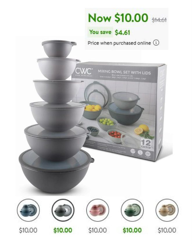 Cook with Color 12-Piece Mixing Bowl Set with Non-Slip Silicone Base and Transparent Lids $10.00 (reg $14.61)