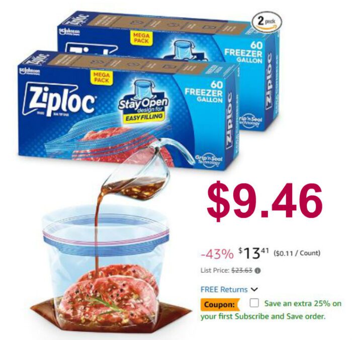 120-Bags Ziploc Gallon Food Storage Freezer Bags $15.78 (reg $23.63)