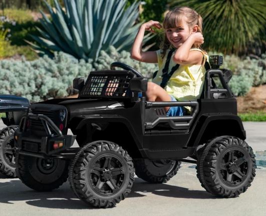 - POWERFUL 12V & REALISTIC DESIGN: Adjustable seatbelt, bright LED headlights, lockable doors, and grid windshield for off-road style, with a 12V motor and traction tires to ride on different terrains