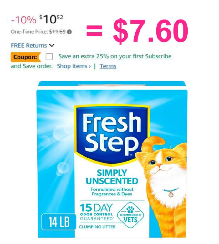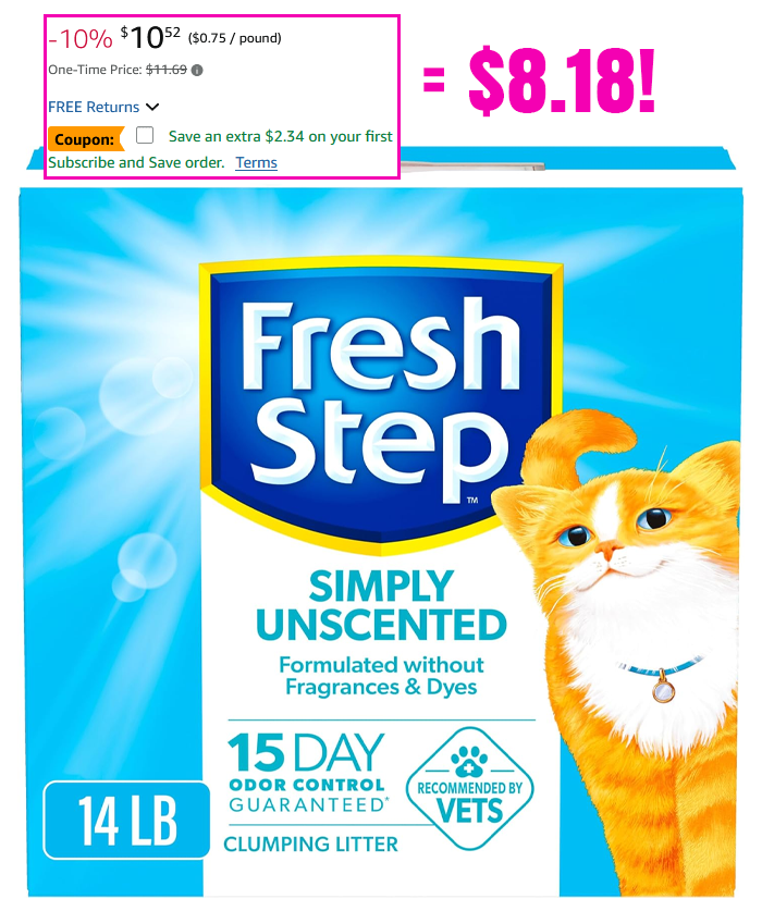 14 lb Fresh Step Simply Unscented Clumping Litter for $11.69