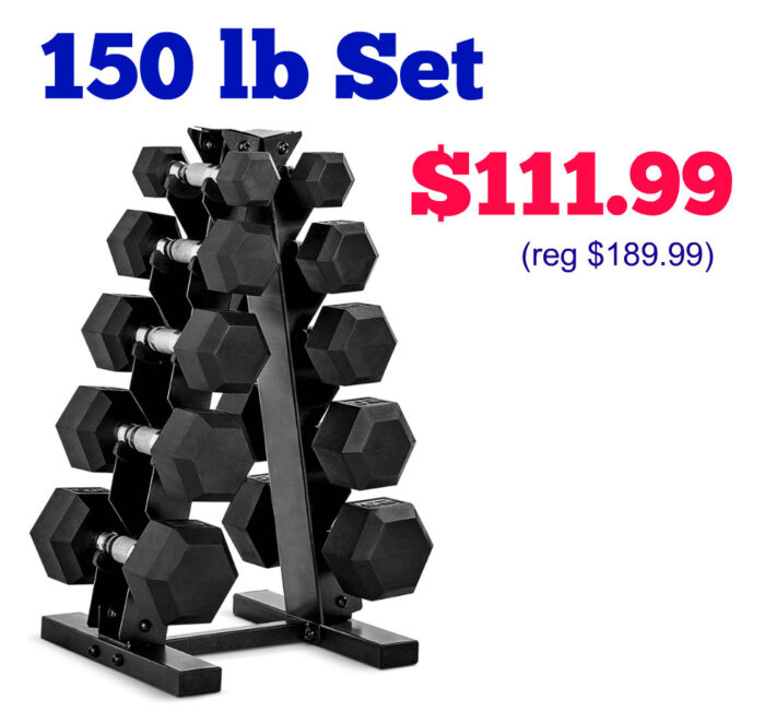 150-lb CAP Barbell Rubber Coated Dumbbell Weight Set with Vertical Rack $139.99 (reg $189.99)
