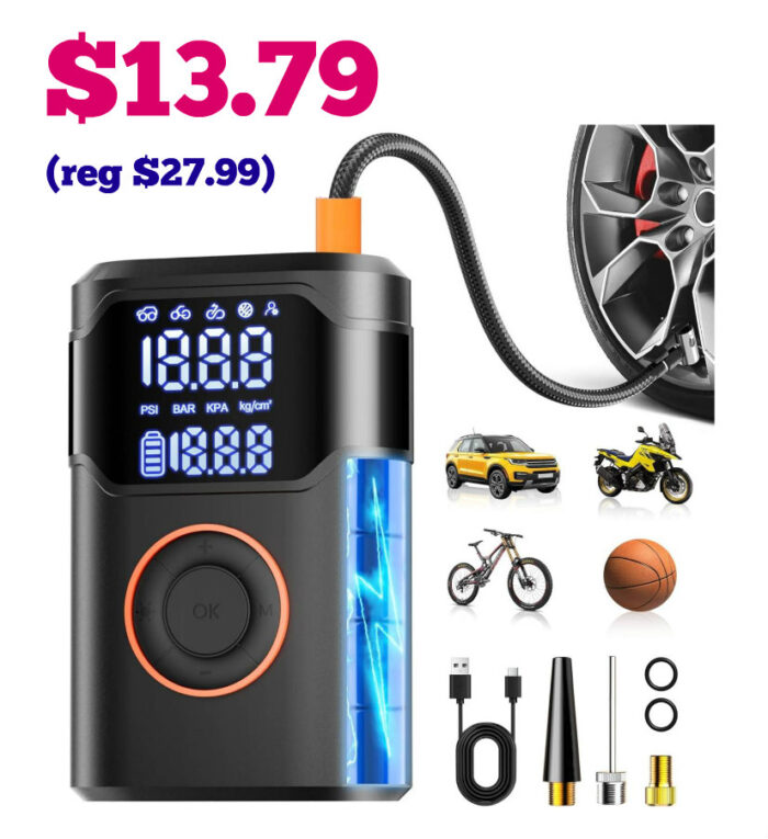 150PSI Tire Inflator Portable Air Compressor $22.99 (reg $27.99)