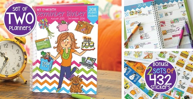 TWO 17-Month Reminder Binder Planners + FREE set of 432 Planner Stickers for each one for $24.95 (regularly $47.96)
