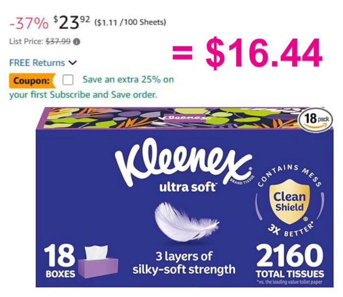 18-Count Kleenex Ultra Soft Facial Tissues $29.90 (reg $37.99)