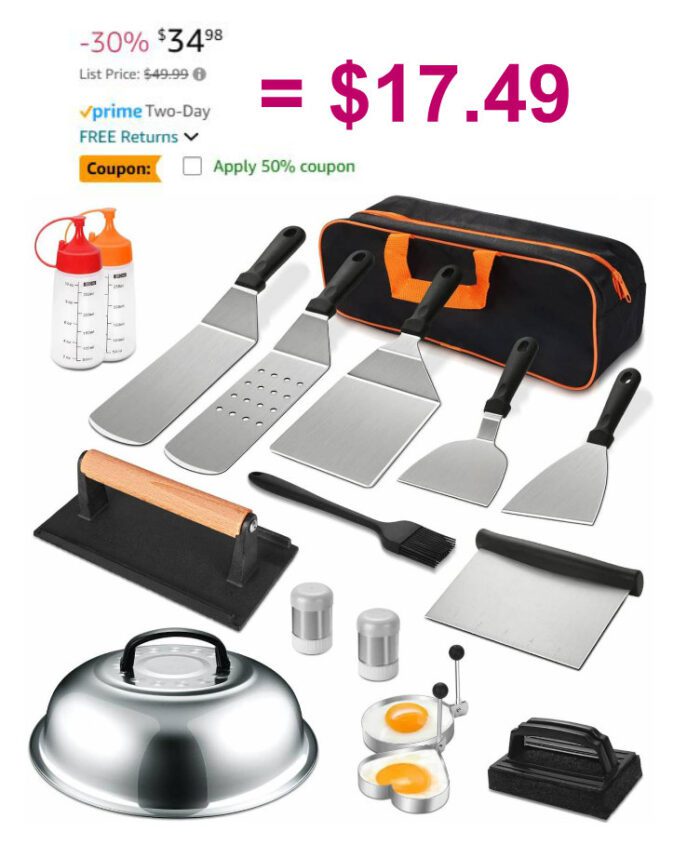18PCS Griddle Accessories Kit, Flat Top Grill Accessories Set for Blackstone and Camp Chef $17.49 (reg $49.99)