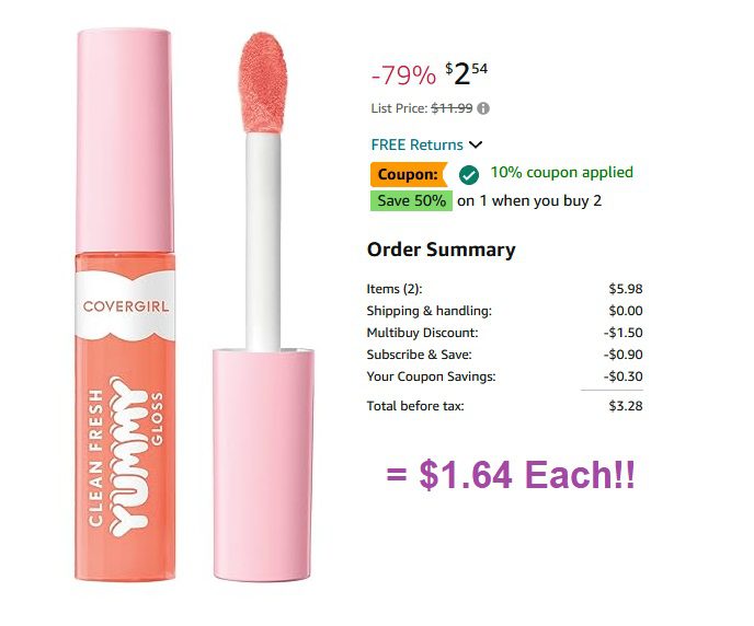 Add TWO (2) COVERGIRL Clean Fresh Yummy Glosses, Peach Out! for $2.99 each to your Subscribe and Save order (regularly $11.99 each)