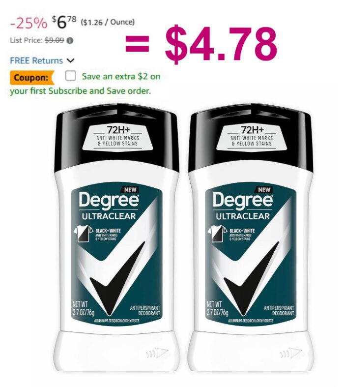 2-Pack Degree Men UltraClear Antiperspirant Deodorant $7.88 (reg $9.09)