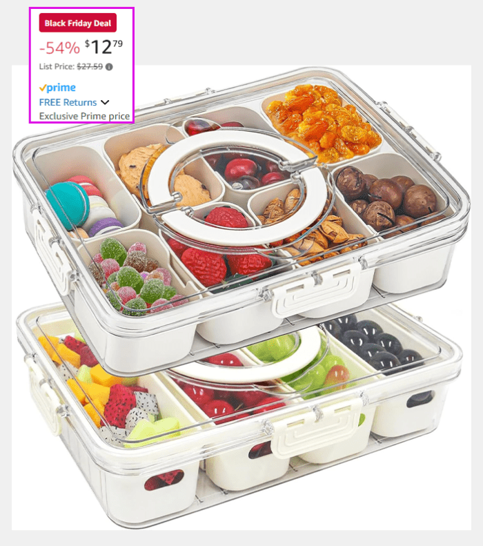 2 Pack Divided Serving Tray with Lid and Handle $12.79 (reg $27.59)