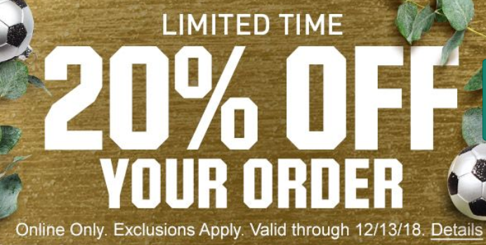 Through December 13th, hop on over to Dick’s Sporting Goods where they are offering 20% off all orders – no code needed! Note that this discount will automatically apply at checkout.