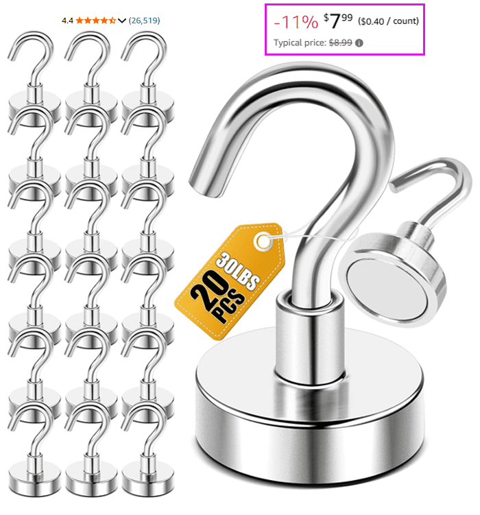 20-Pack DIYMAG Magnetic Hooks $7.99 (reg $15.99)