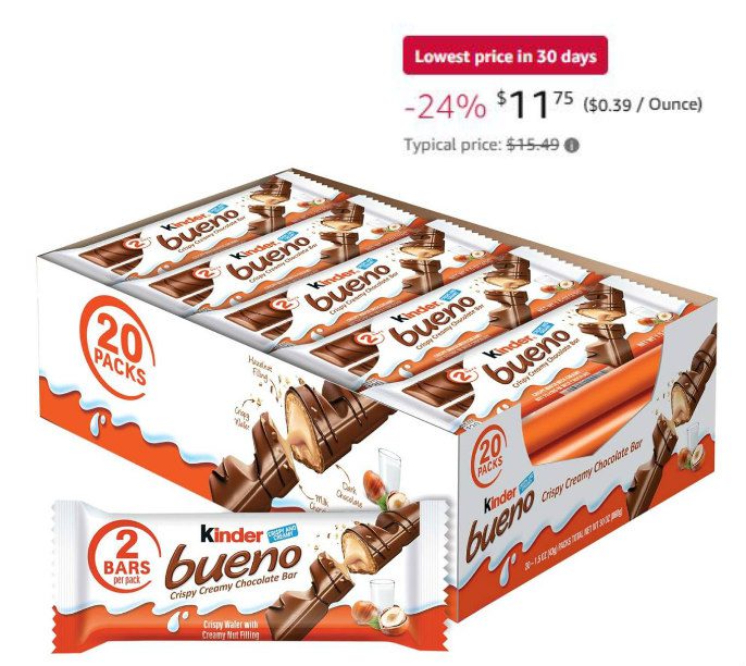 20-Pack Kinder Bueno Milk Chocolate and Hazelnut Cream Bars for $13.99 (reg $16.99)