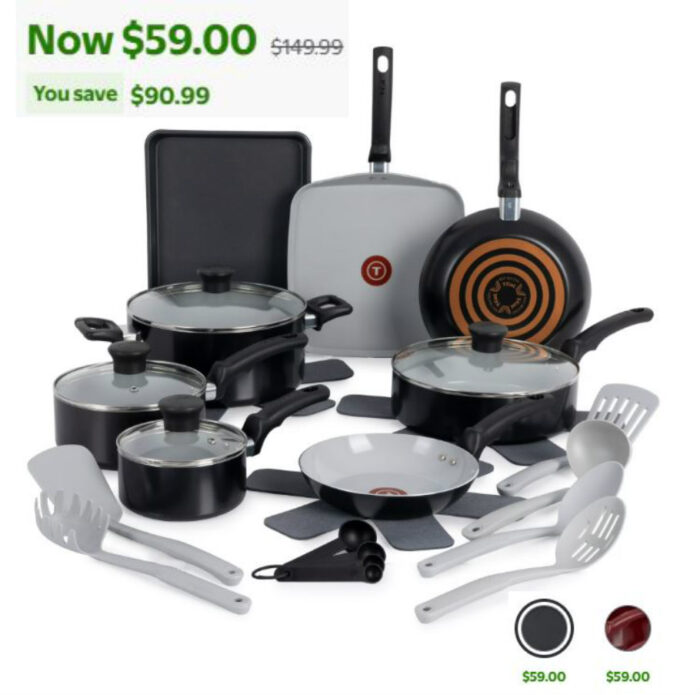 22-Piece T-fal Ceramic Cookware Set $59.00 (reg $149.99)