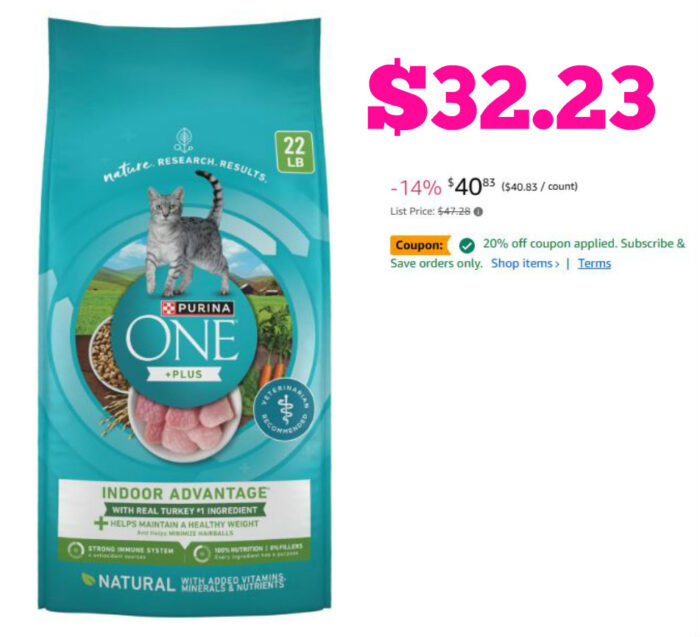 22-Pound Purina ONE Natural, Low Fat, Weight Control, Indoor Dry Cat Food $32.23 (reg $47.28)