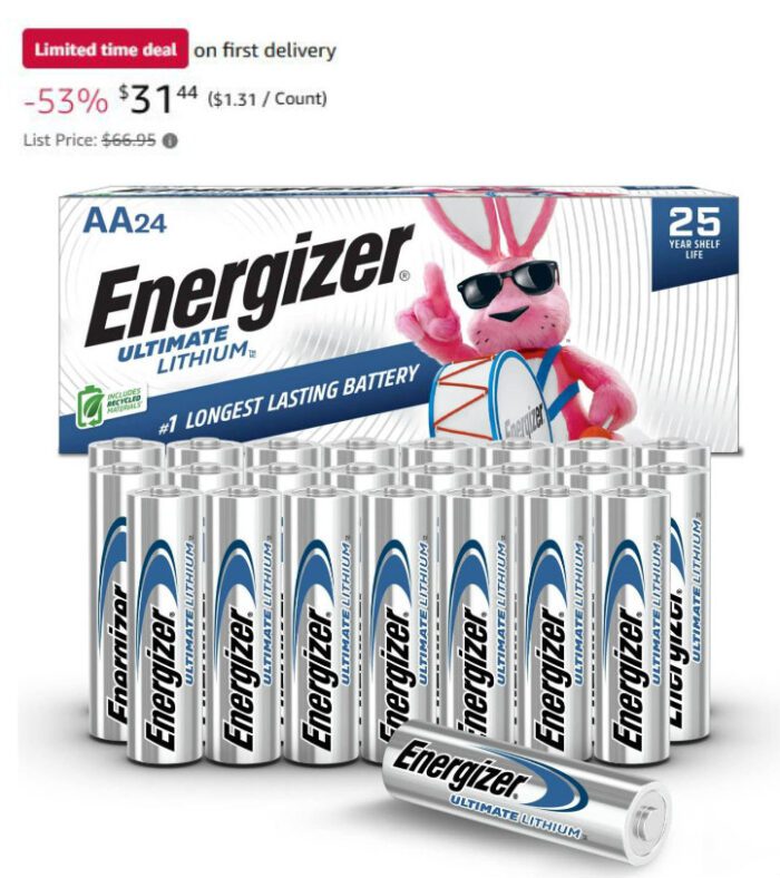 - 24 Pack of Energizer Ultimate Lithium AA Batteries