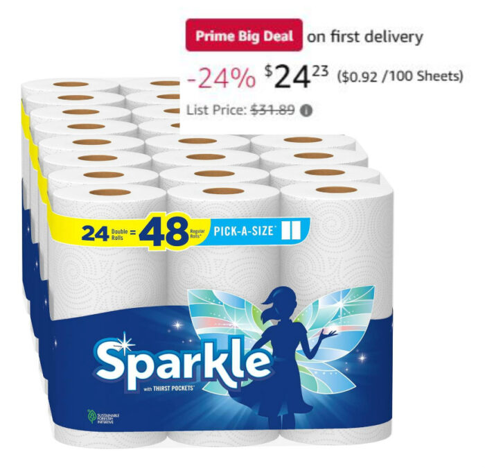 24-Pack Double Rolls Sparkle Pick-A-Size Paper Towels $25.51 (reg $31.89)