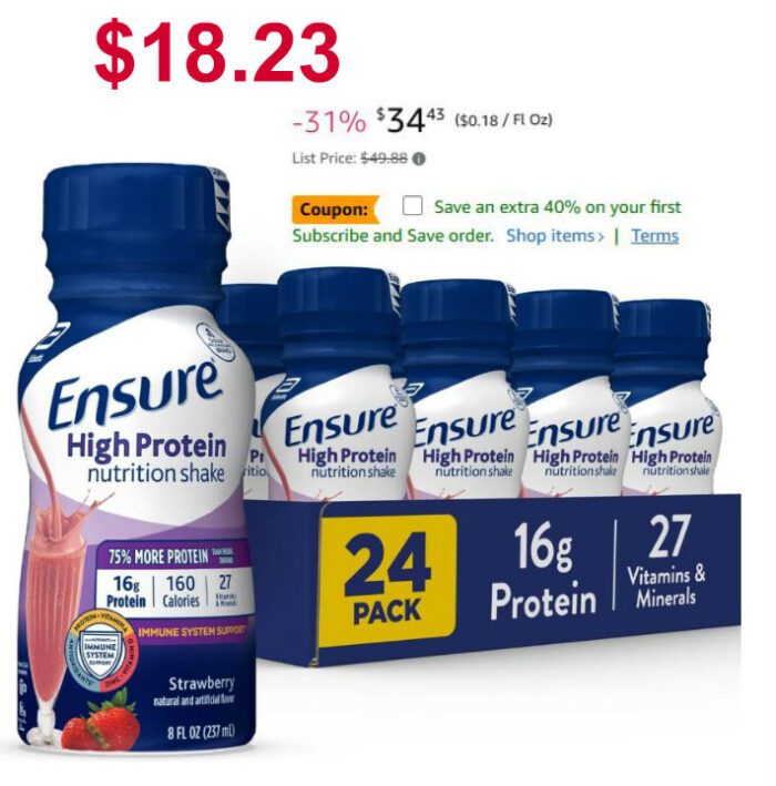 24-Pack Ensure High Protein Nutritional Shake $40.51 (reg $49.88)