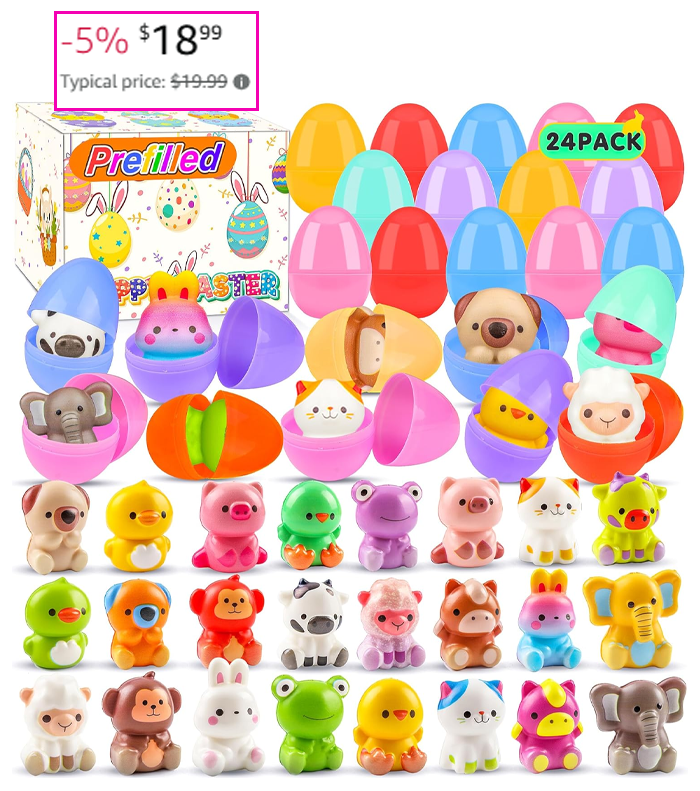 24 Pack Prefilled Easter Eggs with Animal Squishy Toys for $18.99!