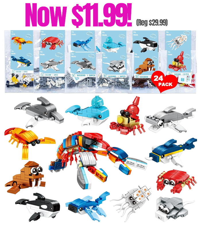 24-Packs Valentine’s Day Cards with Sea Animal Building Blocks $23.99 (Reg $29.99)