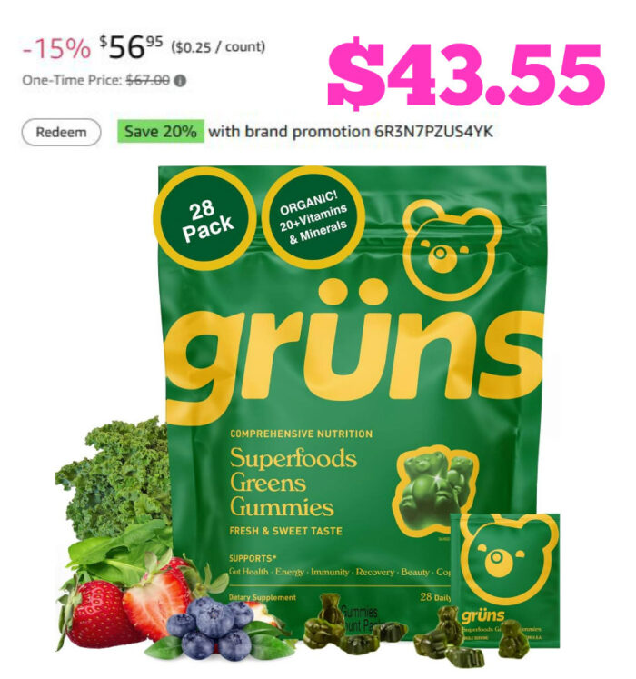 28-Count Gruns Super Greens Multivitamin Gummies $67.00