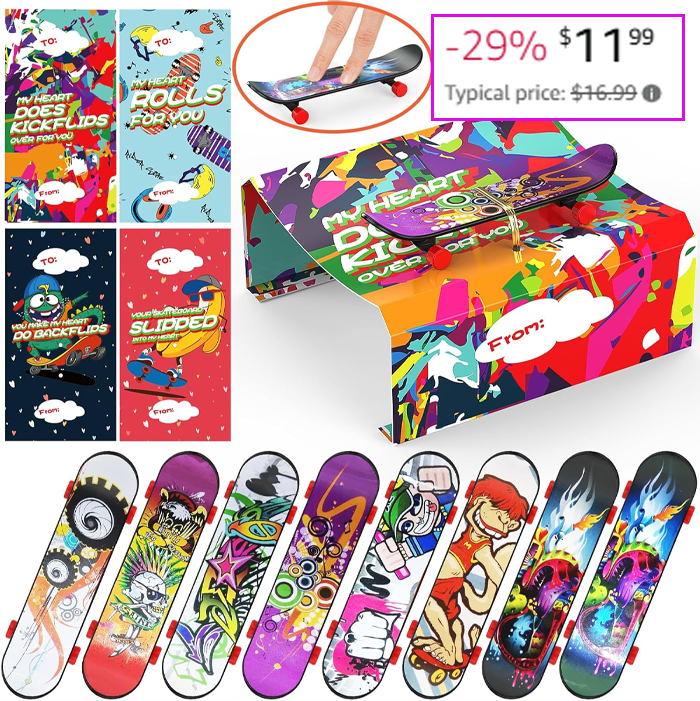 28 Pack Valentine’s Day Greeting Cards Mini Fingerboards for $11.99 (Reg $16.99)!
