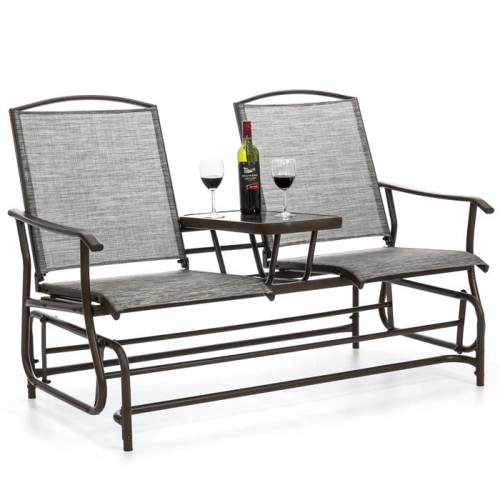 2-Person Patio Glider w/ Attached Glass Table on sale for $99 (Regularly $200)