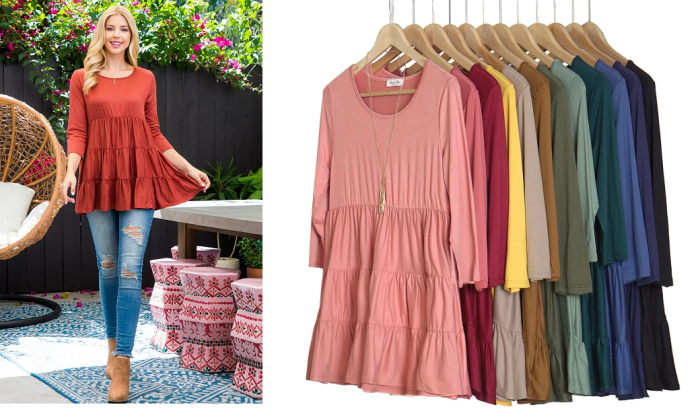 3/4 Sleeve Layered Hem Top for $14.99 + Free Shipping (Reg $47.99)!