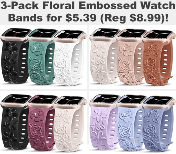 3-Pack Floral Embossed Watch Bands for $8.99