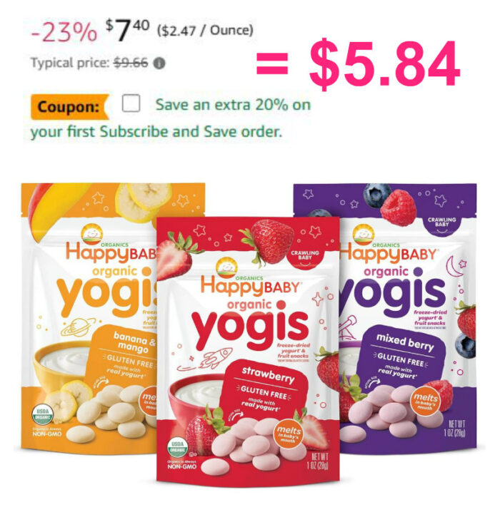 3-Pack Happy Baby Organics Yogis Freeze-Dried Yogurt & Fruit Snacks $7.79 (reg $9.66)