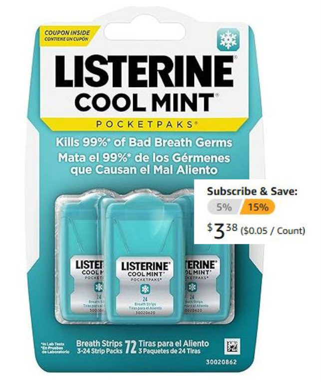 3-Pack Listerine Cool Mint Pocketpaks Breath Strips $3.98 (reg $6.95)