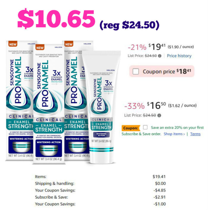 3-Pack Sensodyne Pronamel Clinical Enamel Strengthening Toothpaste w/ Whitening Action $19.41 (reg $24.50)