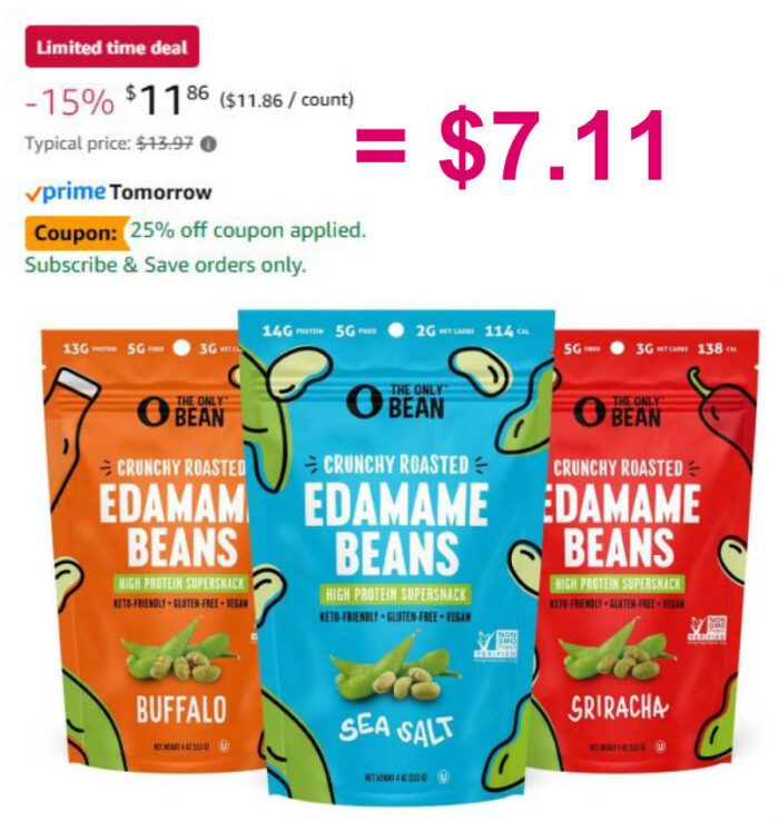 3-Pack The Only Bean Crunchy Roasted Edamame Beans $11.86 (reg $13.97)