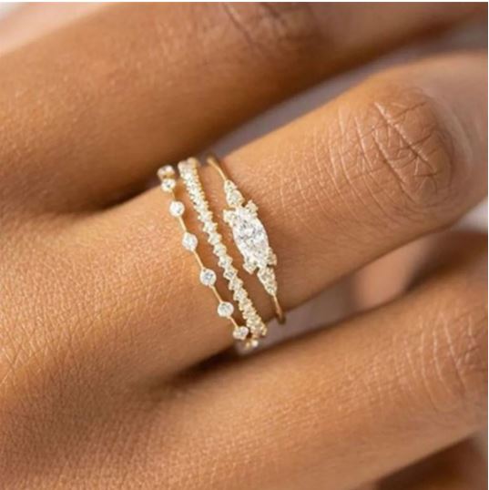 3 Piece Set Elegant 14K Gold Natural White Sapphire Ring for $7.99 (Reg $19.98)